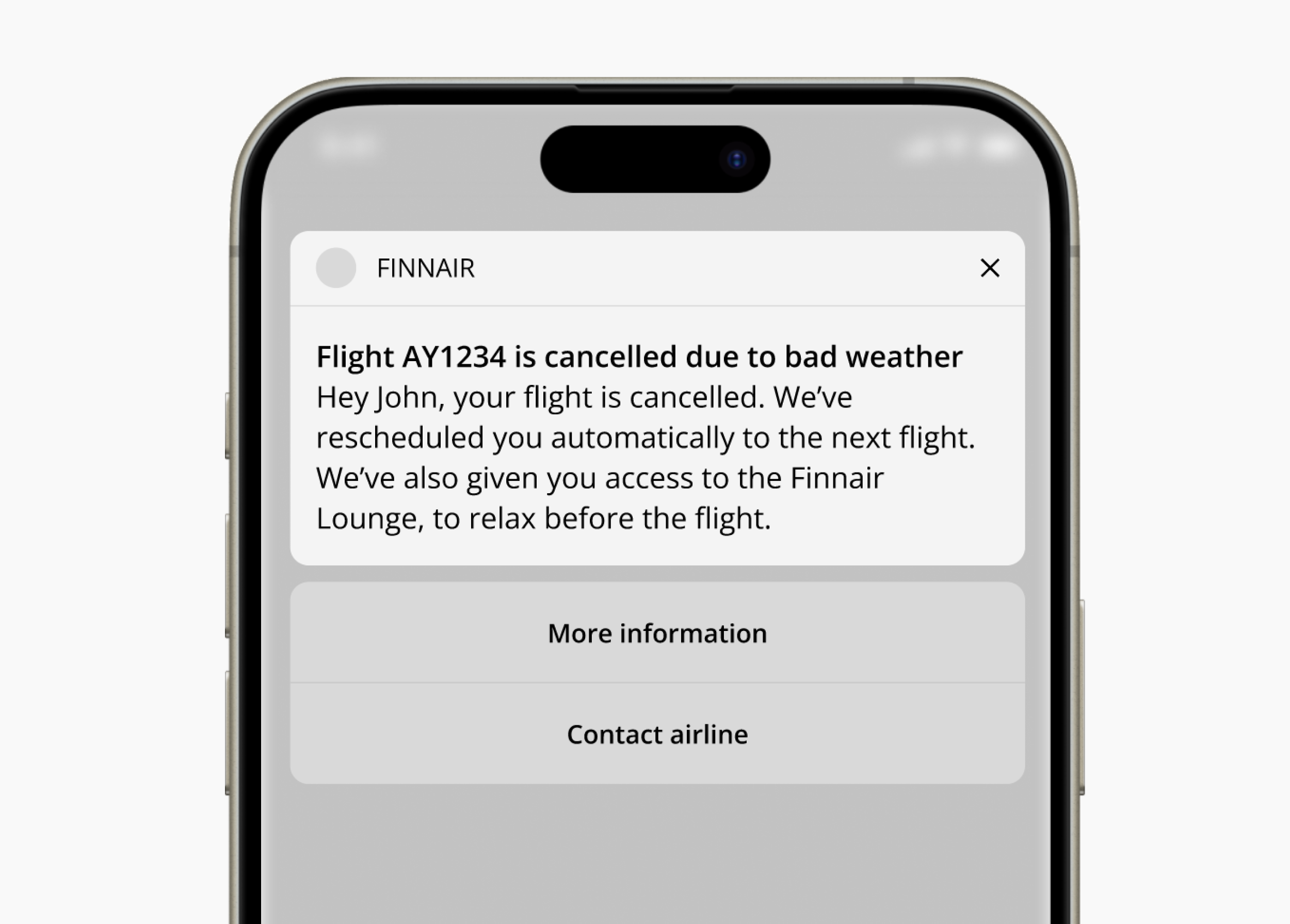 For the first challenge scenario, a traveller is in an airport waiting for their flight home. The flight is abruptly cancelled due to bad weather. The challenge was to write a message for the airline app that notified them of the cancellation and told them what they needed to do next.