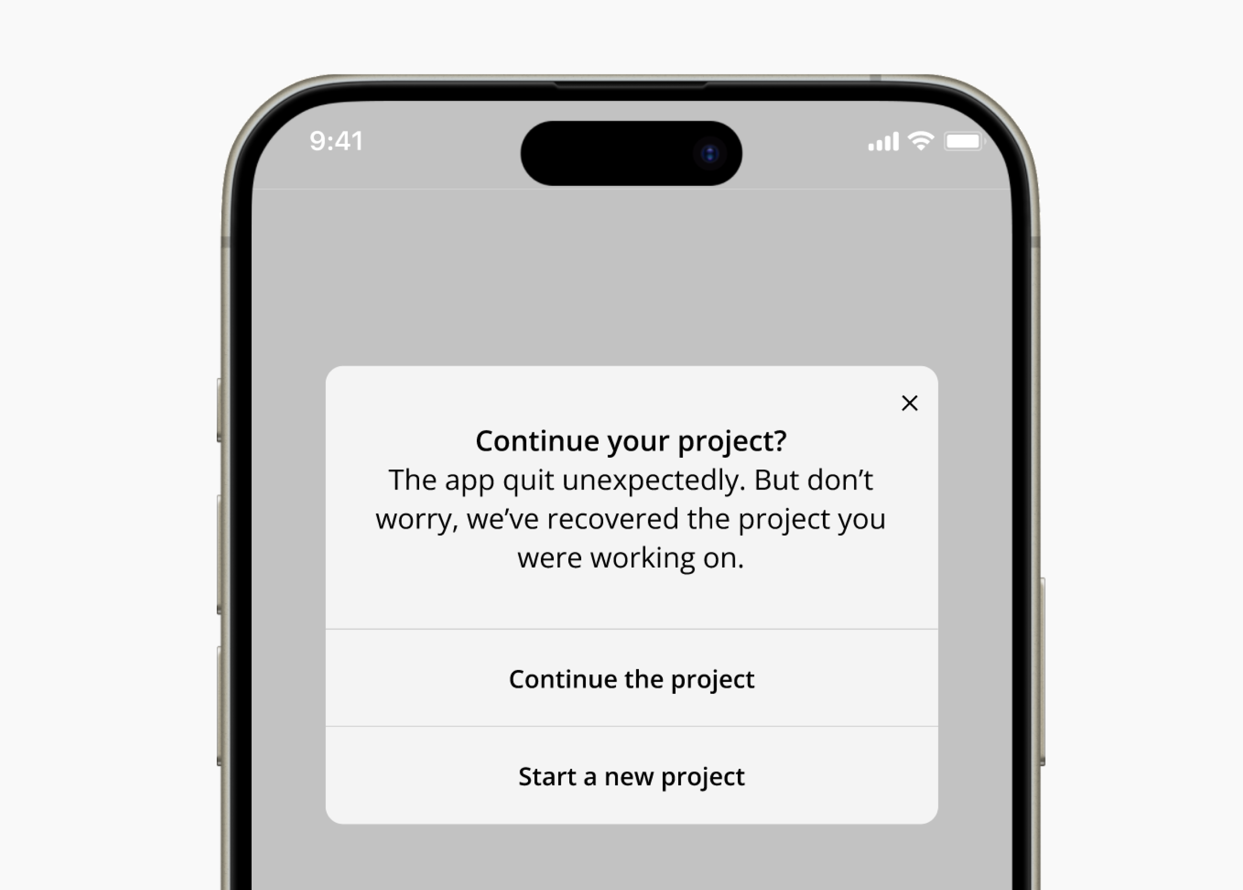 In the third scenario, the user works in graphic design. While they are critiquing a design in a mobile app, their phone abruptly turns off, and they reopen the app when they restart the phone. The challenge was to write a message that the user gets immediately when they open the app. The message should tell them what they need to do to recover their content if they need to do anything.