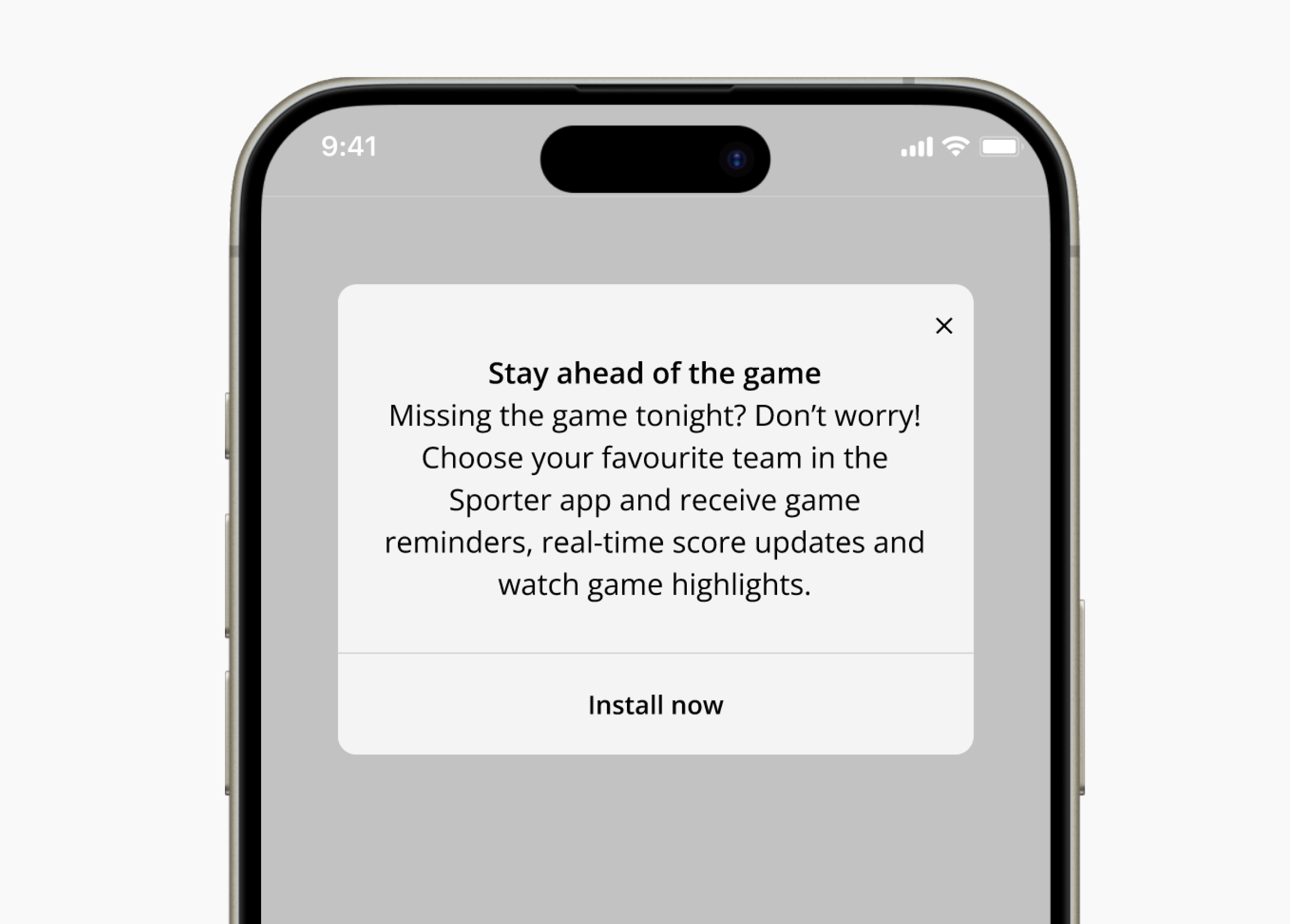 In the second challenge scenario, a user is a working parent and a big sports fan. It's their favourite sports season, but they can no longer attend games. The challenge was to write a promotional screen for an app that lets users choose teams, send game reminders, real-time score updates and highlight-videos.